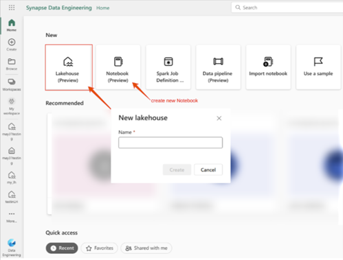 Siga as etapas abaixo para armazenar arquivos/dados no Lakehouse: