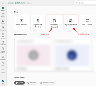 O Fabric utiliza o artefato de notebook dentro da experiência de Data Science para demonstrar os diversos recursos da estrutura do Fabric. O Fabric permite a utilização de notebooks com a finalidade de desenvolver experimentos de aprendizado de máquina e facilitar sua implantação. Portanto, o serviço Data Science e o notebook fornecem uma ampla gama de recursos, que serão discutidos mais adiante. Você pode consultar este Como usar notebooks do Microsoft Fabric para saber mais sobre os serviços de ciência de dados