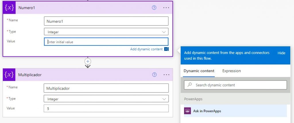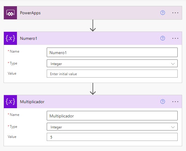 Depois de selecionar, eu inicio o fluxo com o gatilho e irei declarar 2 variáveis para fazer uma operação simples.
