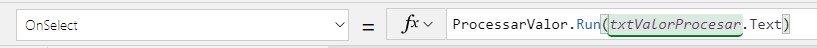 Agora, conforme você clica na Barra de Fórmula para começar a escrever o Fluxo, será solicitado o primeiro parâmetro que adicionamos como Ask In PowerApps em nosso Fluxo acima.