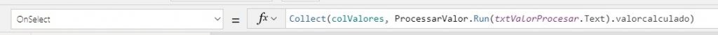 Ao clicar nele, ele é adicionado ao Power Apps e aparecerá na Barra de Fórmulas para que você conclua a chamada.