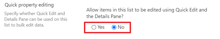 Então, para desativar a edição rápida, navegue até a página de configurações da lista e, em configurações avançadas: