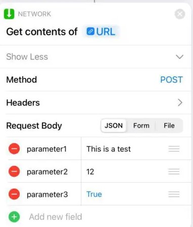 Para testar, usaremos o aplicativo iOS Shortcuts para mostrar que é possível até no celular. Forneceremos o seguinte JSON: