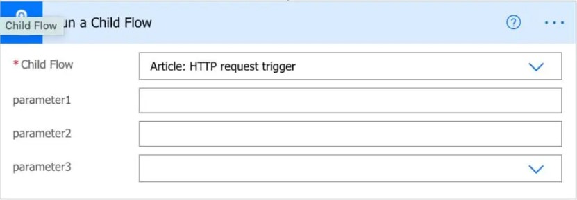 O Power Automate permite que você use um fluxo com um gatilho “Quando uma solicitação HTTP é recebida” como um fluxo filho. Então, você pode chamá-lo e ele até reconhecerá os parâmetros.