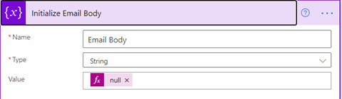O Power Automate permite que a ação Inicializar uma variável (tipo cadeia de caracteres) forneça suporte à formatação HTML, que pode ser usada para enviar e-mails do Outlook. Mas, por que faríamos isso quando usar a ação Enviar um e-mail (V2) oferece suporte a e-mails formatados em HTML?