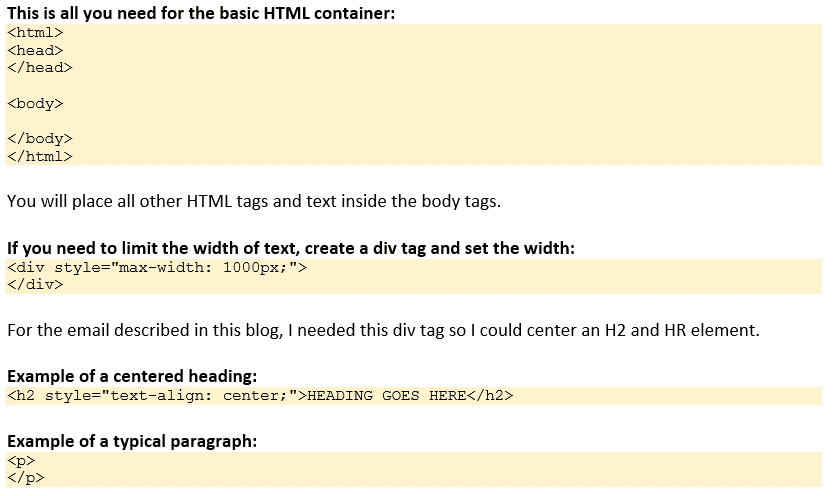 Vou fazer uma pausa aqui para discutir brevemente o HTML. Você não precisa saber muito, mas é importante escrever HTML corretamente ou ele será exibido de forma horrível no e-mail.