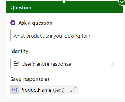 Vamos perguntar ao usuário qual produto ele está procurando e depois salvá-lo em uma variável de produto. Adicione uma pergunta na tela.