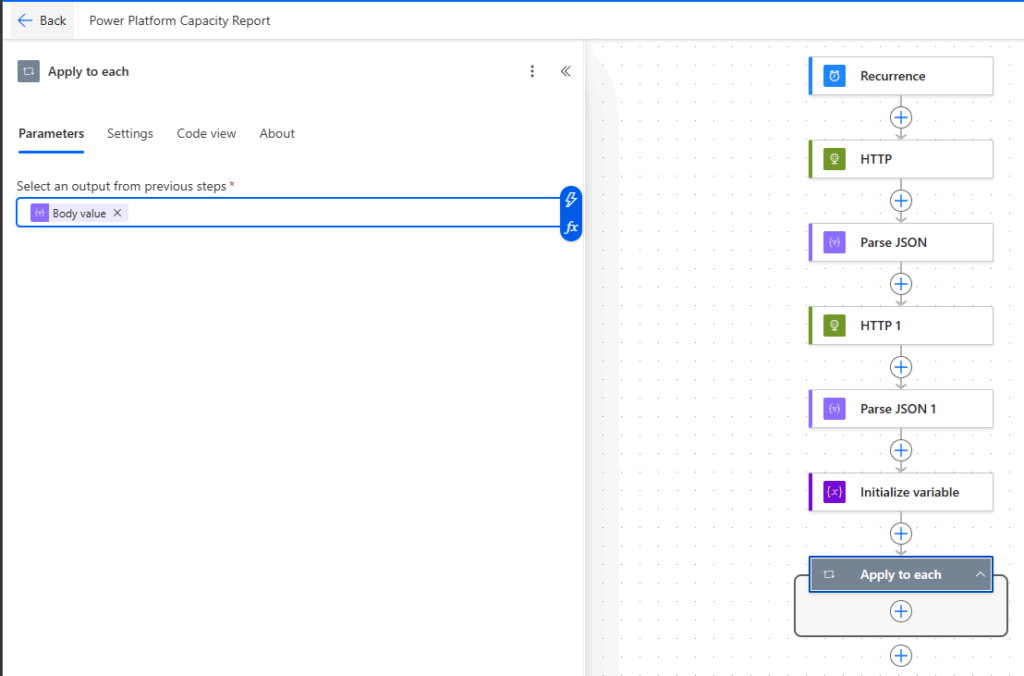 Apply to Each — Ambientes