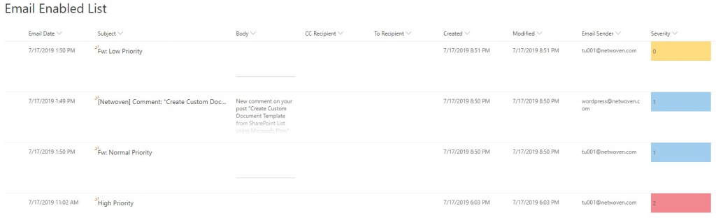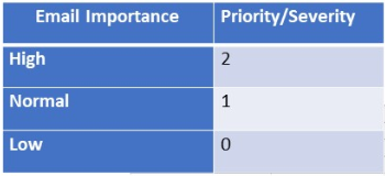 À lista existente, adiciono uma coluna de opção Prioridade. Em virtude de lidar com emails em fluxos, agora eu sei que a importância dos emails corresponde à prioridade / gravidade conforme abaixo:
