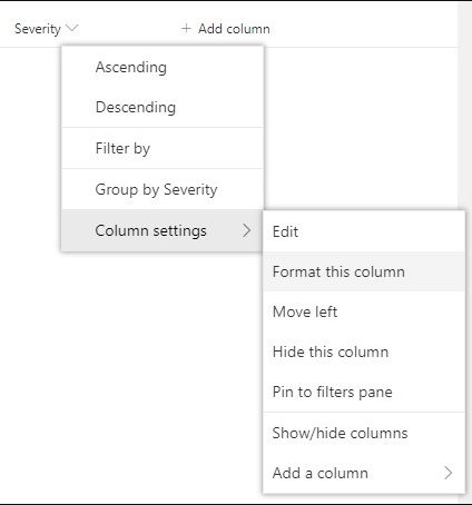 Uma vez criada a coluna, antes de começar a usar minha lista, também preciso formatar esta coluna. Para fazer isso, adicione esta coluna a qualquer visualização da lista e passe o mouse e clique no cabeçalho da coluna. Prossiga conforme orientado pelas capturas de tela.